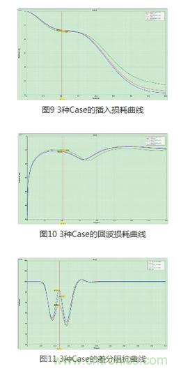 下面是Case1,Case2,Case3三種情況下AC耦合電容插入損耗,回波損耗以及差分阻抗曲線,分別如圖9,圖10及圖11所示。這里使用SnpExpert對S參數(shù)進(jìn)行比較。