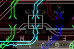AC耦合電容焊盤相比鏈路的走線會比較寬,這樣對于高速信號傳輸來說就是一處阻抗不連續(xù)點(diǎn)(如圖1),為保證阻抗的一致性,AC耦合電容的下方需要做多層的掏空,但是由于PCB設(shè)計(jì)的第3層或者倒數(shù)第3層通常是POWER層,挖空后可能會導(dǎo)致BGA IO口模擬電源的壓降問題;目前很多電源模塊都具有Remote Sense功能,可以補(bǔ)償PCB壓降問題,所以AC耦合電容焊盤下方做多層掏空也是可以的。