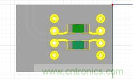 根據(jù)上節(jié)3種Case情況下的仿真結(jié)果和PCB設(shè)計(jì)的實(shí)際情況,AC耦合電容只掏空GND02層,掏空尺寸為X方向掏34mil,Y方向掏66mil。因?yàn)閂iaExpert可以直接導(dǎo)入Brd文件,所以在PCB設(shè)計(jì)完成后在ViaExpert里面直接對Brd進(jìn)行解析,提取出板上的AC耦合電容和出線。PCB實(shí)際AC耦合電容的設(shè)計(jì)以及導(dǎo)入到ViaExpert中提取完成的3D效果圖分別如圖12和圖13所示。