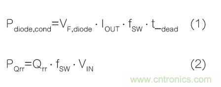 事實上,下橋臂體二極管導通損耗(Pdiode,cond)和反向恢復損耗(PQrr)與二極管正向壓降(VF,diode)及其反向恢復電荷(Qrr)密切相關:
