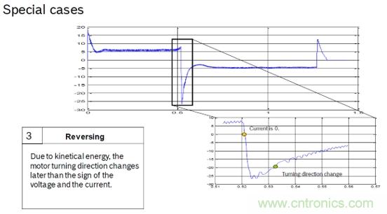 由于電機(jī)在啟動(dòng),停止,反轉(zhuǎn),堵轉(zhuǎn)時(shí)的紋波特征不明顯。如圖5和圖6,不能精準(zhǔn)的計(jì)數(shù)紋波個(gè)數(shù)。只能通過(guò)算法進(jìn)行補(bǔ)償。這樣紋波計(jì)數(shù)必然和實(shí)際的必然存在誤差。而這誤差隨著車(chē)窗操作次數(shù)的增加,誤差也會(huì)跟著累積。
