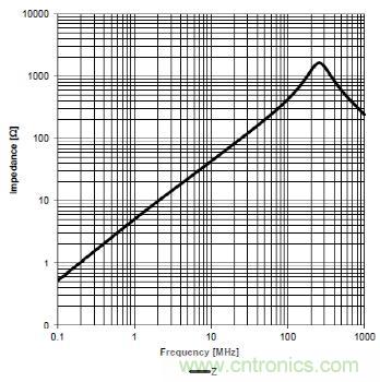 圖1:Wurth Electronics電感744029001在工作頻率時的阻抗特性表現