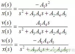 上面三個(gè)式子分別對(duì)應(yīng)高通、帶通和低通濾波器,如果將u、v、w三路信號(hào)加權(quán)疊加則可以組成任意的二階系統(tǒng)。