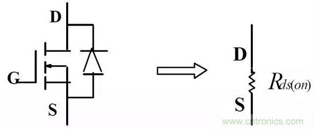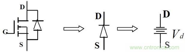 即內部二極管的等效電路,可用一電壓降等效,此二極管為MOSFET 的體二極管,多數情況下,因其特性很差,要避免使用。