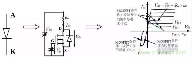 功率 MOSFET 在門級控制下的反向導通,也可用一電阻等效,該電阻與溫度有關,溫度升高,該電阻變大;它還與門極驅動電壓的大小有關,驅動電壓升高,該電阻變小。詳細的關系曲線可從制造商的手冊中獲得。此工作狀態稱為MOSFET 的同步整流工作,是低壓大電流輸出開關電源中非常重要的一種工作狀態。