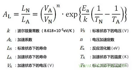 在此公式的基礎上,通過在更為嚴苛的條件(更高溫、更高電壓)下進行加速試驗,可推算出產品在實際使用環境下的使用壽命。