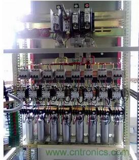 合上刀熔開關和斷路器,無功功率補償控制器根據進線柜電壓和電流的相位差輸出控制信號,控制交流接觸器閉合和斷開,從而控制電容器投入和退出。