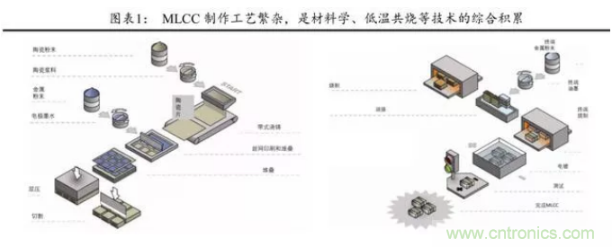 電介質陶瓷粉料 的材料技術、介質薄層化技術、陶瓷粉料和金屬電極的共燒技術被譽 為 MLCC 行業最核心的三大技術。