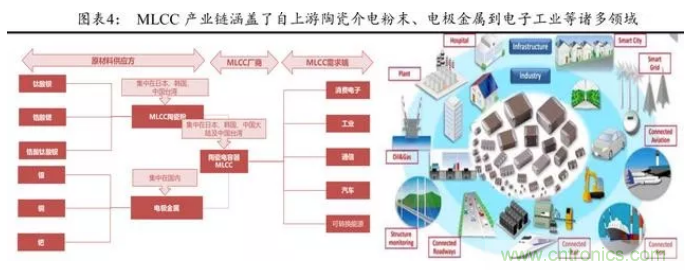 MLCC產業的下游幾乎涵蓋了電子工業全領域,如消費電子、工業、通信、汽車及軍工等。
