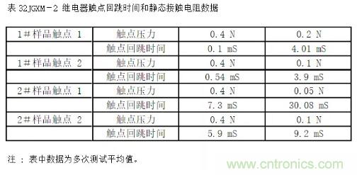 觸點(diǎn)接觸電阻包括動(dòng)合點(diǎn)接觸電阻和靜合點(diǎn)接觸電阻,是繼電器最重要的參數(shù)之一,也是最難測的參數(shù)的之一。圖3顯示了對繼電器觸點(diǎn)進(jìn)行四線凱爾文測試的原理。說其難測是因?yàn)榻佑|電阻只有幾十毫歐、十幾毫歐,甚至只有幾毫歐,如果不是全線采取四線凱爾文測試,扣除測試系統(tǒng)的內(nèi)部電阻和接觸電阻則很難將其測準(zhǔn)。說其重要是因?yàn)橛|點(diǎn)接觸電阻除了反映觸點(diǎn)的電性能(電阻)以外,還反映了觸點(diǎn)的化學(xué)和物理性能,例如觸點(diǎn)表面是否有鈍化膜產(chǎn)生,觸點(diǎn)間的壓力是否能達(dá)到設(shè)計(jì)要求。試驗(yàn)證明當(dāng)繼電器中的彈性材料應(yīng)力減退,觸點(diǎn)壓力下降將會(huì)在觸點(diǎn)接觸電阻參數(shù)上有明顯的反映,所以觸點(diǎn)接觸電阻與繼電器的接觸可靠性密切相關(guān)。表2顯示了繼電器樣品在試驗(yàn)中觸點(diǎn)接觸電阻和觸點(diǎn)壓力之間的關(guān)系。