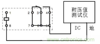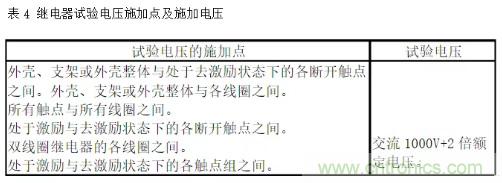 介質(zhì)耐壓(俗稱打高壓)是考核繼電器的殼體、繞阻、觸點(diǎn)及觸點(diǎn)間在規(guī)定的時(shí)間內(nèi)承受規(guī)定交流電壓的能力。而絕緣電阻是考核繼電器的殼體、繞阻、觸點(diǎn)及觸點(diǎn)間在效加規(guī)定直流電壓的條件下體現(xiàn)出來的絕緣電阻。國軍標(biāo)規(guī)定的試驗(yàn)電壓施加點(diǎn)見表4。