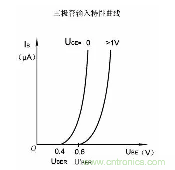 集-射極電壓UCE為某特定值時(shí),基極電流IB與基-射電壓UBE的關(guān)系曲線。
