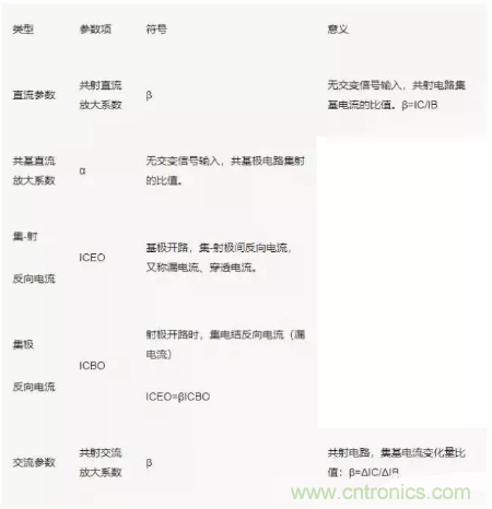 三極管性能參數(shù)較多,有直流、交流和極限參數(shù)之分: