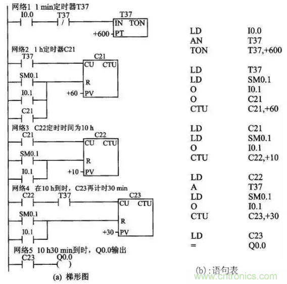 2.延時停止控制 定時時間到,延時停止。I0.0為啟動按鈕、I0.1為停止按鈕。