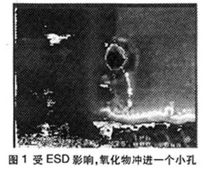 如圖1所示,電子部件受ESD影響時,會發生什么?會產生一個細微的孔,氧化物將侵擾部件。