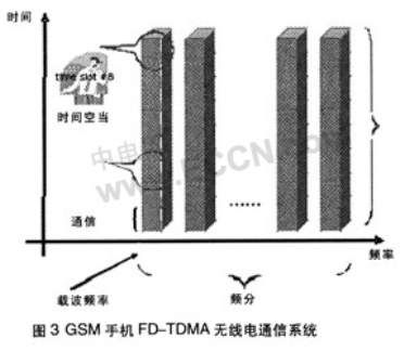 思考當今電子世界,到處信號持續不斷地變化:音頻的輸入/輸出能產生輻射及傳導EMI,然后發射更高頻率的射頻線,導致信號失真;手機天線(TDMA脈沖)會發射射頻信號,此信號可被長線頭戴式耳機接收,導致音頻信號通路中EMI噪音;GSM(全球通)手機標準使用頻分多路傳輸和時分多路傳輸,同時傳送大量電話,如圖3所示。