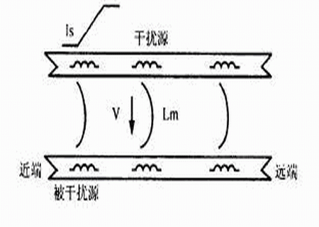 信號在傳輸通道上傳輸對相鄰的傳輸線上引起兩類不同的噪聲信號:容性耦合信號與感性耦合信號,如圖2、圖3所示。容性耦合是由于干擾源(Aggressor)上的電壓(Vs)變化在被干擾對象(Victim)上引起感應電流(i)通過互容Cm而導致的電磁干擾,而感性耦合則是由于干擾源上的電流(Is)變化產生的磁場在被干擾對象上引起感應電壓(V)通過互感(Lm)而導致的電磁干擾。