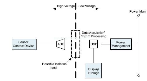 隔離電路的主要原因是保護電路不受危險電壓和電流的損壞。在圖1的醫療應用實例中,即使是小量的AC電流也有可能造成致命的傷害,因此需要采用一個隔離層來保護病人。隔離還可對敏感電路進行保護,使其免于受到工業應用中出現的高壓損壞。圖2的工業實例僅為一個高壓測量法。將傳感器與實際高壓相隔離使得對低壓電路的測量成為可能。