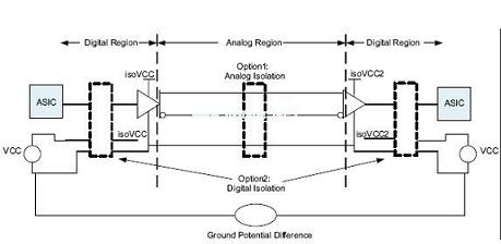 電感耦合技術的主要缺點是對外部磁場(噪聲)的磁化。工業應用通常要求磁場隔離,例如:馬達控制。數字變壓器傳輸中另一個缺點是數據運行長度。一個信號轉換器在某一頻率和振幅范圍內傳輸信號,并且其失真可以接受。需要數據運行長度限制或時鐘編碼來將該信號保持在可用變壓器帶寬內。采用電感耦合技術的通用數字隔離器要求信號處理隨同傳輸低頻率信號(1或0長字符)的方法共同對數字信號進行傳輸和重新構建。NVE公司/Avago(安華高)公司推出的Isoloop,以及ADI(美國模擬器件公司)推出的iCoupler均使用了編碼功能,并提供了支持從DC到100Mbps運行范圍的數字隔離解決方案。