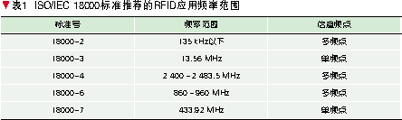 表1為國際標準ISO/IEC 18000標準系列中推薦RFID設備使用的頻率范圍。