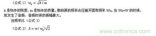 頻率可分為固有頻率Wn和激勵頻率W,固有頻率源于產(chǎn)品的結(jié)構(gòu)特征,由質(zhì)量、質(zhì)量分布、質(zhì)心位置、剛度等多個因素和多個因素間的相互作用所確定。固有頻率計算公式為(公式1)k是物體的剛度,m是物體的質(zhì)量。激勵源的頻率點應避開固有頻率Wn。當Wn=W的時候,就發(fā)生了諧振,諧振時候的振幅最大。