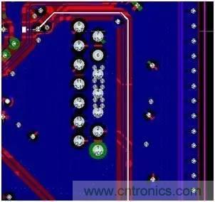 比如在EMC試驗時,MCU的ADC采集到的信號被干擾到了,則除了在原理圖上分析外,在PCB上講該信號高亮出來,然后再耐心尋找該信號的回流路徑是否有不順暢的地方:
