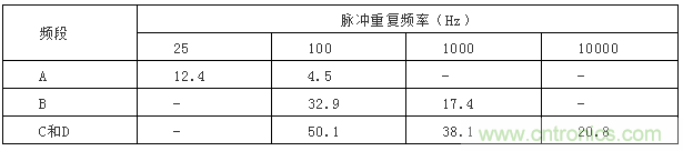 所謂相對脈沖特性指輸人周期性脈沖信號時,脈沖的重復頻率越高,其讀數越高,重復頻率低,讀數低。當讀數不變時輸人脈沖的幅度和重復頻率的關系應符合表4的規定。