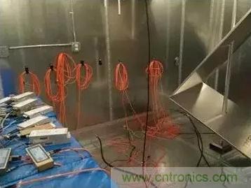 圖2:在EMC干擾室外用于抗干擾數據動態分析的示波器陣列