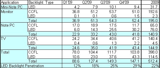 Source: DisplaySearch Quarterly LED Backlight Panel Shipment and Forecast Report