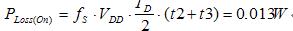 MOSFET開通損耗主要發生t2和t3時間段。下面以一個具體的實例下計算。輸入電壓12V,輸出電壓3.3V/6A,開關頻率350kHz,PWM柵極驅動器電壓為5V,導通電阻1.5Ohm,關斷的下拉電阻為0.5Ohm,所用的MOSFET為AO4468,具體參數如下:Ciss= 955pF,Coss= 145pF,Crss= 112pF,Rg= 0.5Ohm;當VGS= 4.5V,Qg= 9nC;當VGS=10V,Qg= 17nC,Qgd= 4.7nC,Qgs= 3.4nC;當VGS=5V且ID=11.6A,跨導gFS= 19S;當VDS=VGS且ID=250uA,,VTH= 2V;當VGS= 4.5V且ID=10A,RDS(ON)=17.4mOhm。