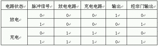 將A、B兩點(diǎn)與脈沖信號(hào)均接入與非門的輸入端,再經(jīng)一個(gè)非門輸出信號(hào)。這樣,就可構(gòu)成了一個(gè)邏輯關(guān)系。如表1。接到電池兩端,這里可以用一個(gè)開關(guān)TWH8778來連接。