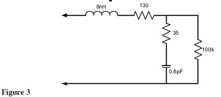 查看Figure 1中的等效電路,可以看到諧振頻率(1/(2*PI*sqrt(LC))給出)點(diǎn)的探頭輸入阻抗是0歐姆——完全消除了被測(cè)信號(hào)!最近一些制造商開(kāi)始注意這個(gè)問(wèn)題并設(shè)計(jì)具有更好輸入特性的探頭。Figure 3展示了這種探頭(Probe A)的等效電路。這是許多給出這個(gè)探頭精確依賴(lài)于尖端和地夾的等效負(fù)載模型之一。這個(gè)探頭還有一個(gè)諧振點(diǎn)大概是2GHz,該頻點(diǎn)的阻抗被電阻限制到大約165歐姆。