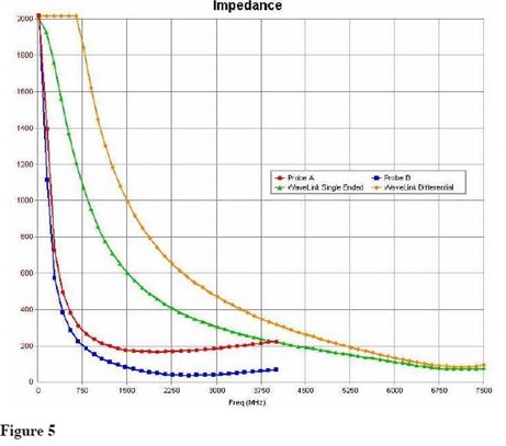 差分探頭具有固有的較低負(fù)載,現(xiàn)在的問(wèn)題是增加到非常高的帶寬差分放大器(這里是7.5GHz)已被解決,這么一個(gè)探頭的所有的高頻測(cè)量是最好的。WaveLink系列探頭在這些任何已有的高頻探頭中具有最低的負(fù)載,提供了測(cè)試信號(hào)的最低失真。