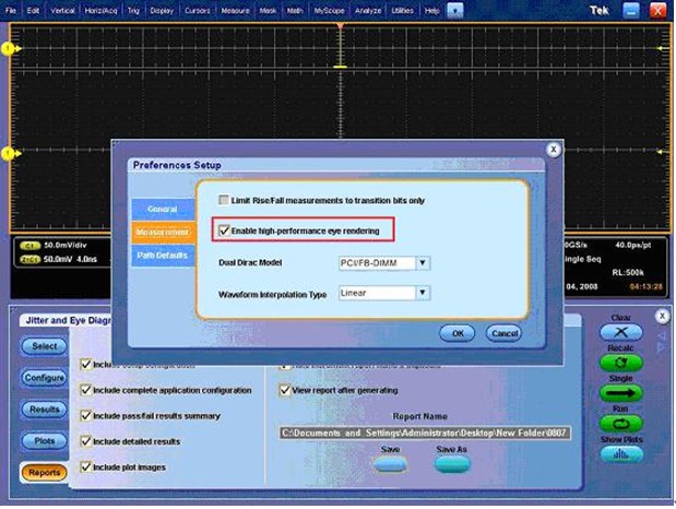 如果您在使用的是XXK的老軟件包RT-EYE,那么您需要在C:\下的某個文件夾中找到某個tdsrt-eye文件進行手工修改,去掉這個限制,但在去掉之后如果您捕獲數據超過5Mpts會容易死機。 如果您是在用XXK示波器新的DPOJET軟件包,那么需要在”Analyze”菜單下的“Perferences setup”子菜單的又一個子菜單“Measurement”的的某個子選項中找到設置。 不是XXK示波器發燒友似乎是找不到的呵!