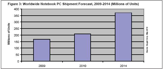 據iSuppli公司,由于經濟形勢好轉,以及兩大強勢產品領域預計擴張,2010年筆記本電腦將實現兩位數的增長,突顯整體移動電腦市場繼續保持強勁勢頭。