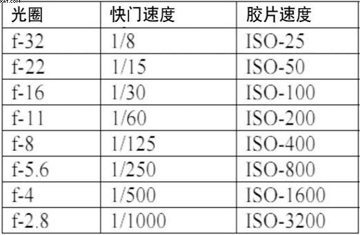 表1攝影組合級(jí)數(shù)