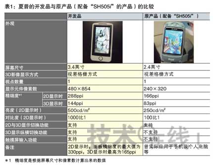 此次為了實(shí)現(xiàn)量產(chǎn),夏普進(jìn)行了以下改進(jìn):①提高了顯示性能;②實(shí)現(xiàn)了薄型化。①顯示性能方面,分別將影像顯示用液晶面板的精細(xì)度和亮度提高到了原來的兩倍(表1)。因此,即使進(jìn)行3D顯示,最大精細(xì)度也可達(dá)到165ppi。據(jù)介紹,這是通過驅(qū)動(dòng)元件(TFT)的微細(xì)化實(shí)現(xiàn)的。該公司稱,還通過提高兩張面板的粘合精度,減輕了左眼用和右眼用影像重疊的“串?dāng)_(Crosstalk)”現(xiàn)象。