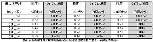 安裝高柔性扁平電纜的拖鏈B在不同運行速度下也產生了不同數量的微粒(見表4)。按照VDIGuideline2083和ISO14644-1標準,鑒定這種電纜拖鏈裝置產生集塵的可能性是3%。
