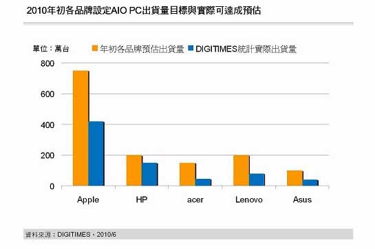 - 預估2010年 AIO PC 市場將大幅成長