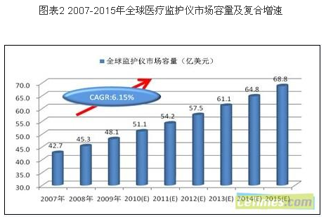- 2015年全球監護儀市場需求復合增速不會低于6.15%