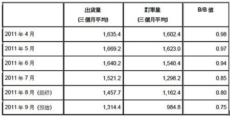 根據國際半導體設備材料產業協會(SEMI)最新公布的Book-to-Bill訂單出貨報告,2011年9月份北美半導體設備制造商平均訂單金額為9.848億美元,B/B值(Book-to-Bill Ratio,訂單出貨比)為0.75;代表半導體設備業者當月份出貨100美元,接獲75美元的訂單。