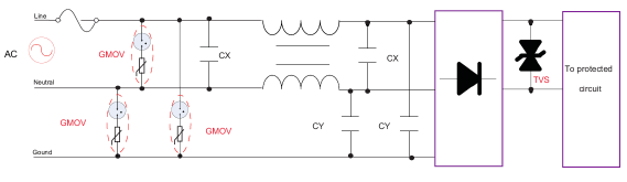 • 由于放電管的脈沖擊穿電壓高,一般在選型設計的時候要做二極保護是比較安全可靠的。