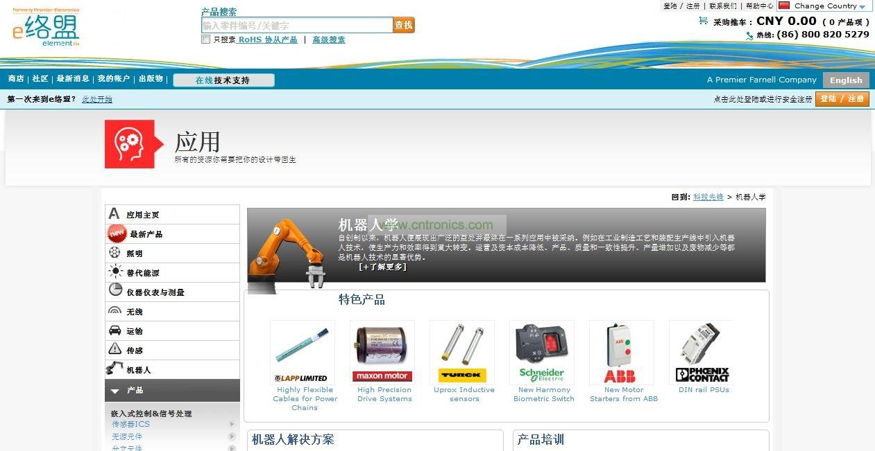 首個融合電子商務與在線社區的電子元件分銷商e絡盟(element14)日前宣布,在亞太區推出新的機器人、醫療和工業自動化子站。三個全新子站將主要滿足亞太區對最新技術的需求,從而為該公司成功運營的子網站注入新鮮血液。公司已推出的子站還包括無線、傳感、照明、替代能源、交通和儀器儀表與測量等。