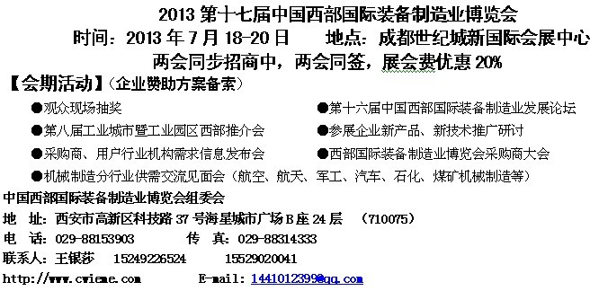 同期舉辦:中國西部國際裝備制造業(yè)發(fā)展論壇