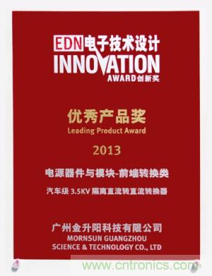 圖1:金升陽榮獲2013年第八屆EDN China優秀產品獎