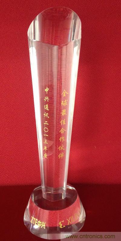 圖1:中興通訊授予Xilinx “2013年度全球最佳合作伙伴獎”