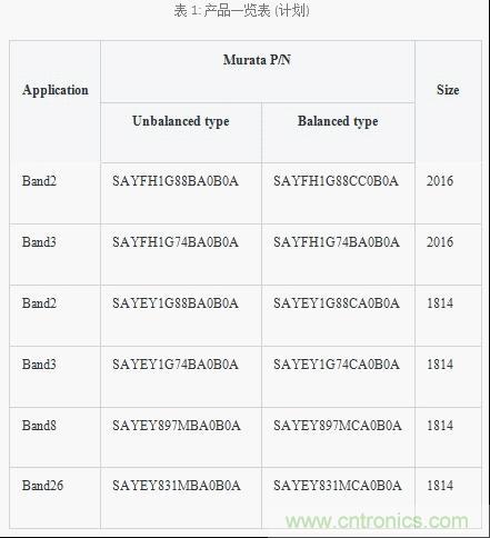 目前為止介紹的TC-SAW相關的產品實際上是目前主流的2.0×1.6mm (2016)尺寸的產品陣容以及今后將要成為主流的1.8×1.4mm (1814)尺寸的產品陣容,如表1所示。這些產品已經開始量產并且不久后將向市場供應,由于已經得到了顧客的良好反饋,預計今后還將根據市場需求進行擴大。