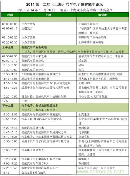 【導讀】我愛方案網 (www.52solution.com)、電子元件技術網 (aolaiaolisita.com) 攜手中國電子展、清華大學、上海市浦東新區科學技術協會、上海市汽車工程學會順應時勢,將在2014年10月30日共同主辦第十二屆(上海)汽車電子暨智能車論壇。