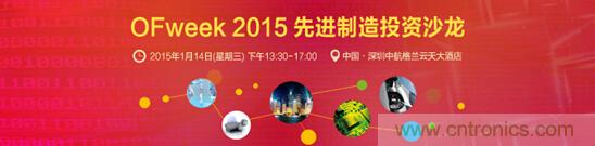 【導讀】OFweek中國高科技行業門戶與OFweek投融資擬于2015年1月14日在深圳舉辦 OFweek 2015先進制造投資沙龍活動。本次活動廣邀多位先進制造技術企業界、投資界知名人士參加。