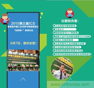 【導讀】gongkong®與工信部電子科學技術情報研究所聯合主辦,由中國儀器儀表學會與OPC中國基金會支持的2015第三屆工業信息化及信息安全發展論壇暨首屆中國工業互聯與智能制造之“互聯網+”高峰論壇,將于2015年8月7日在北京歌華開元大酒店召開。